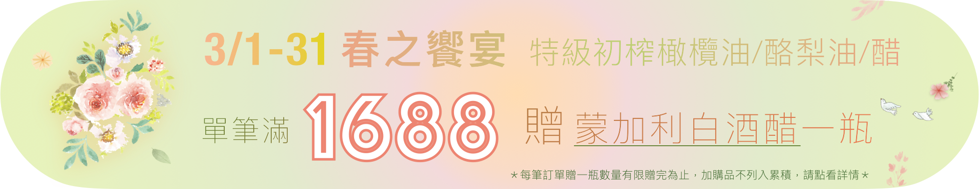 228連假公告~現主時-3/1(日)訂購照常,所有訂單將於3/2(一)出貨,敬祝健康樂活,闔家平安!