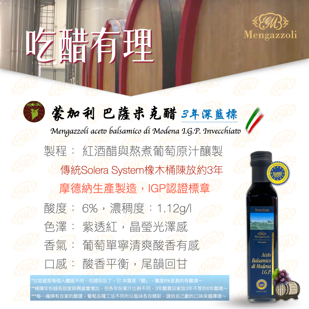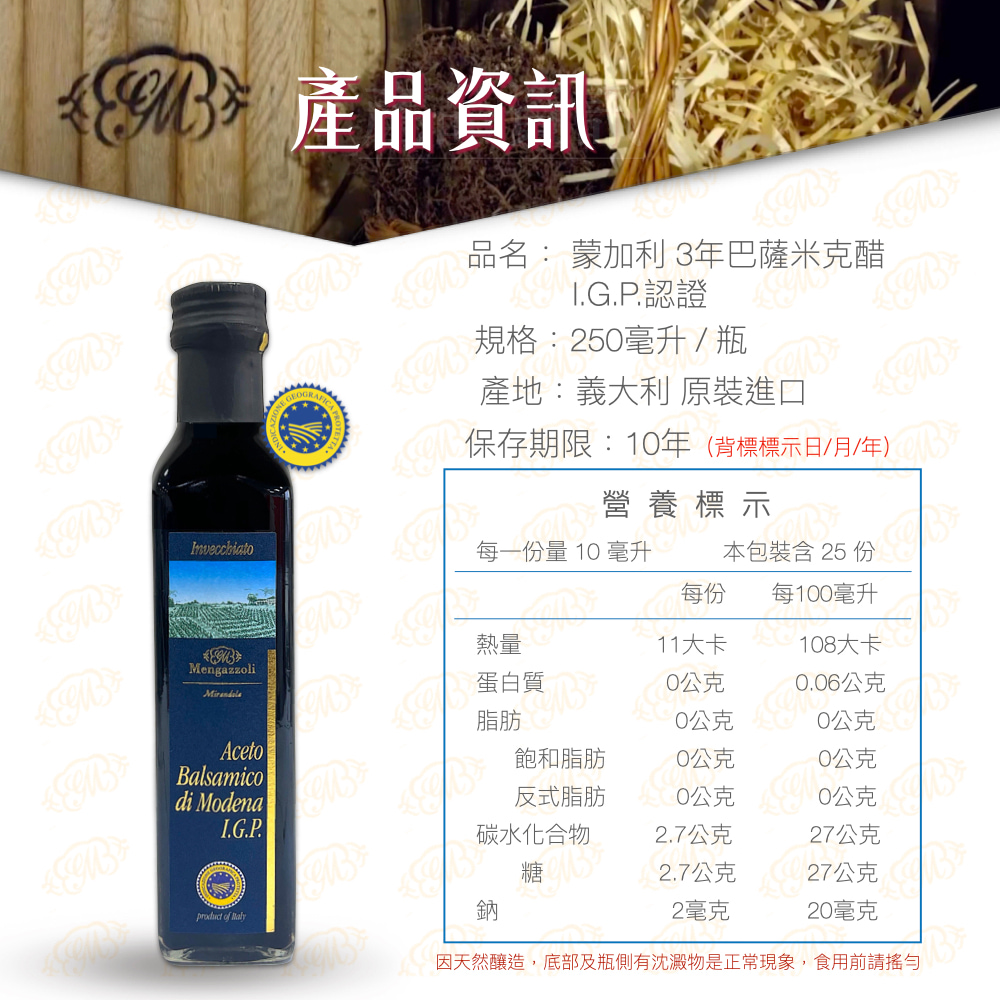 2、商品品名:蒙加利3年巴薩米克醋I.G.P.認證