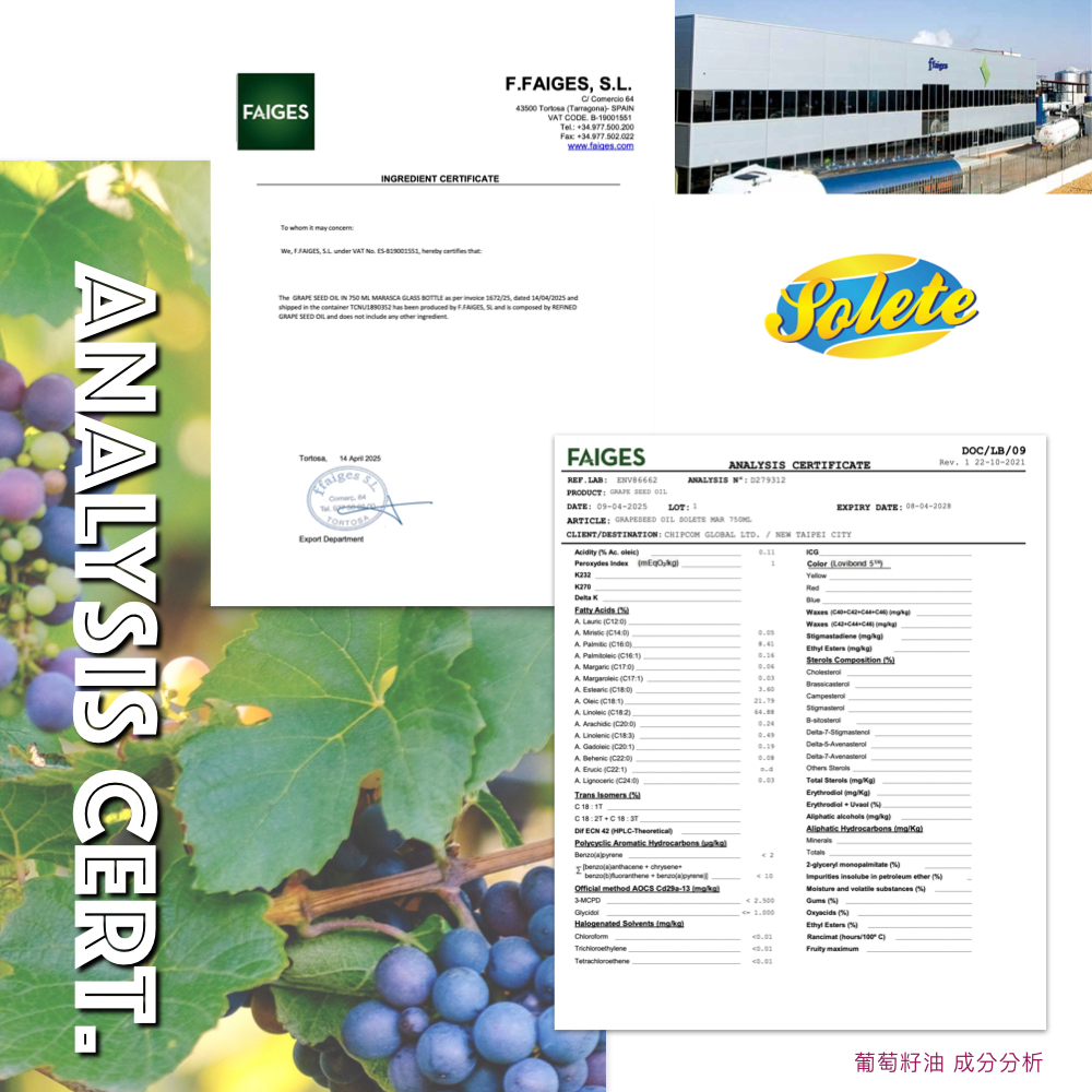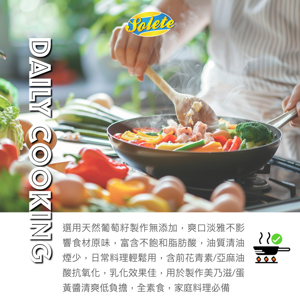 西班牙橄欖油老牌Ffaiges出品,嚴選莊園葡萄籽製作,質感清新淡雅,保留前花青素天然營養,呈現食材原味,富含不飽和脂肪酸,料理無負擔,家庭料理煎/炒/拌/煮輕鬆用,照顧全家人,全素食,BRC/IFS/清真/猶太潔食認證,西班牙原裝原瓶進口品質保證