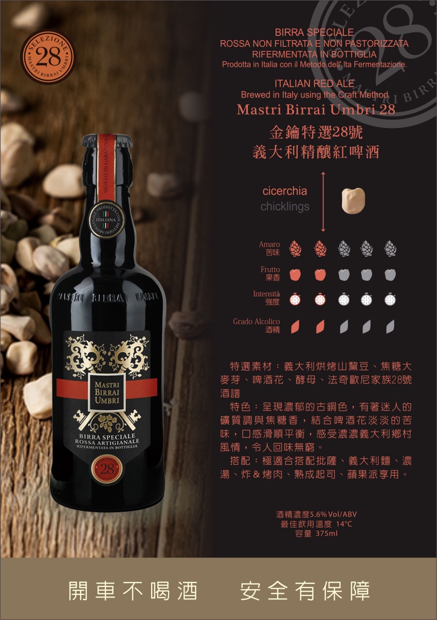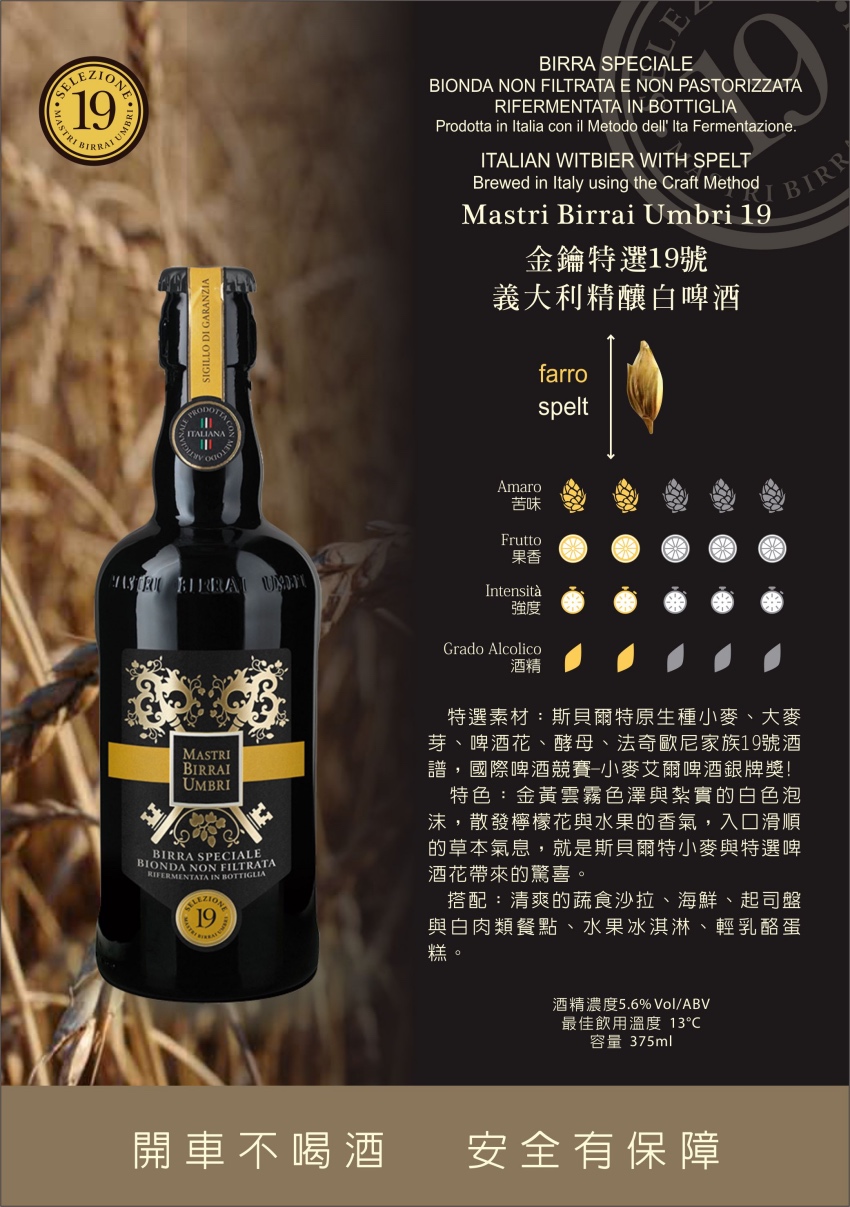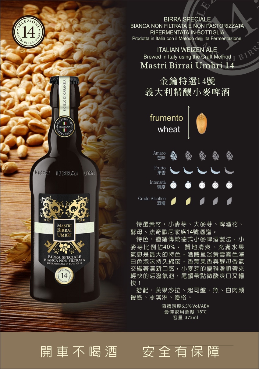 金鑰特選啤酒的秘密:釀造之初,法奇歐尼家族選用自家麥田與團隊設計上百種配方,歷經無數失敗與嘗試...最後,大家一致認為編號14、19、28、42、75號酒譜的風味獨特,最能代表義大利在地特色與家族近240年的耕耘精神!瓶身上的金鑰圖案更是開創與永恆的象徵,傳統啤酒釀製工法,上層發酵,與創新配方交融誕生的金鑰精釀啤酒,每款都擁有豐富香氣與口感完美比例,未過濾瓶內二次發酵,一口喝下,層次鮮明,細緻又暢快!就像在義大利的陽光下放鬆自在地徜徉!5款精釀艾爾啤酒已抵台上市,邀您共享。 請注意:法律規範酒類商品未開放網購,此頁面僅供展示,購買&優惠請電洽 02-29470028感謝您【未成年請勿飲酒,禁止酒駕】